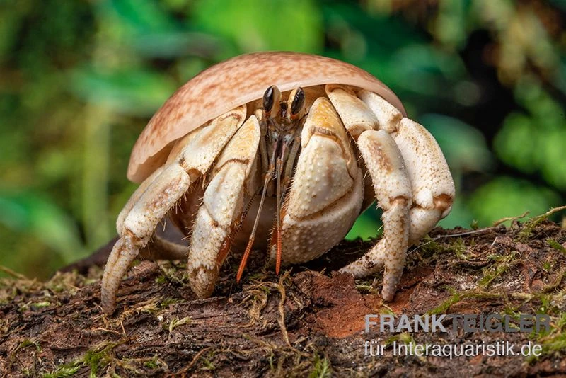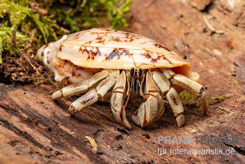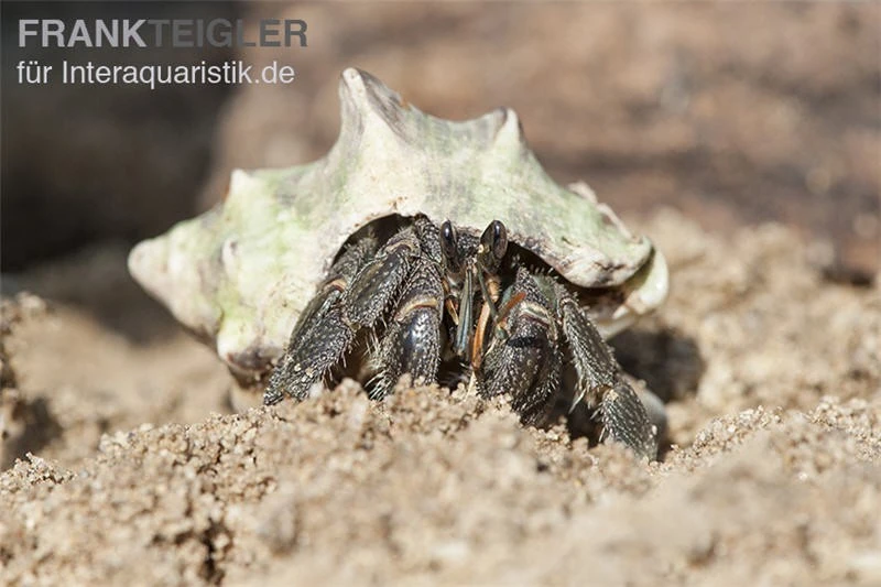 Der Landeinsiedlerkrebs, lat. Coenobita spec., ist ein absolut friedlicher, interessanter und robuster Einsiedlerkrebs. Der sehr variabel gefärbte Landeinsiedlerkrebs besitzt ein ausgeprägtes Sozialverhalten, daher ist die Haltung in einer kleinen Gruppe anzuraten. Landeinsiedlerkrebse sind sehr anspruchslos und dankbar. Sie zeigen meist ein aktives Verhalten und begeistern durch ihr freundliches Aussehen und ihre Zutraulichkeit. Nach einiger Zeit werden Ihnen die putzigen Gesellen meist sogar aus der Hand fressen. Teilweise sind Coenobita spec. aber auch dämmerungs- und nachtaktiv, daher sollte man nicht beunruhigt sein, wenn es den Krebsen tagsüber manchmal an Tatendrang mangelt. Die hier angebotenen Tiere zeigen sich bei uns aber durchaus auch am Tage aktiv. Sie bestellen hier einen zufälligen Mix von Tieren, welche Art bei Ihnen genau enthalten ist können wir nicht vorhersagen, es können auch unbestimmte Tiere enthalten sein.