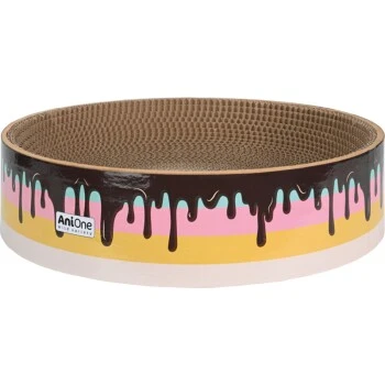 AniOne Kratzpappe für Katzen. Runde Kratzpappe mit aufgedrucktem Kuchendesign. 2-in-1: für Kratzspaß und als komfortabler Liegeplatz. Ideal zur Unterstützung der täglichen Krallenpflege. Perfekte Ergänzung zum regulären Kratzbaum. Material: recyceltes Papier. Inkl. Katzenminze. Maße:ca. Ø 40 x 10cm